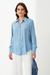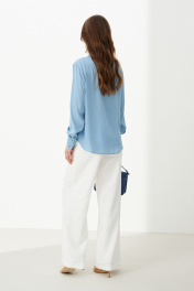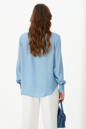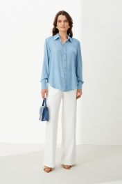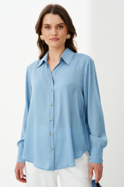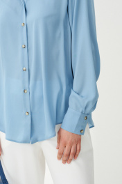 Эта стильная женская блузка голубого оттенка идеально подойдет для повседневной носки. Выполненная в прямом силуэте, она обеспечивает комфорт и свободу движений. Ткань поливискозная, струящаяся, что придает изделию легкость и изящность. Перед украшен центральной бортовой застежкой на обметанные петли и пуговицы, а низ изделия выполнен с закругленным краем, добавляя изящества образу. Горловина оформлена классическим рубашечным воротником, а рукава завершены притачными манжетами с застежками на две обметанные петли и пуговицы — практично и стильно. Эта очень легкая и практичная блузка станет отличным выбором для ежедневных образов, сочетая комфорт с элегантностью и привлекательностью. 44 Блузка: Длина изделия - 72см, Длина рукава - 58см, Обхват шеи - 47.5см, Ширина плеча - 15см, Ширина по груди - 61см, Ширина по низу - 66см, Ширина рукава - 23.2см; 46 Блузка: Длина изделия - 72см, Длина рукава - 58см, Обхват шеи - 48см, Ширина плеча - 15см, Ширина по груди - 63см, Ширина по низу - 68см, Ширина рукава - 24см; 48 Блузка: Длина изделия - 72.5см, Длина рукава - 58см, Обхват шеи - 48.5см, Ширина плеча - 15.2см, Ширина по груди - 65см, Ширина по низу - 70см, Ширина рукава - 24.8см; 50 Блузка: Длина изделия - 72.5см, Длина рукава - 58см, Обхват шеи - 49.5см, Ширина плеча - 15.2см, Ширина по груди - 67см, Ширина по низу - 72см, Ширина рукава - 25.5см; 52 Блузка: Длина изделия - 72.5см, Длина рукава - 58см, Обхват шеи - 50.5см, Ширина плеча - 15.5см, Ширина по груди - 69см, Ширина по низу - 74см, Ширина рукава - 26.2см; 54 Блузка: Длина изделия - 72.5см, Длина рукава - 58см, Обхват шеи - 51см, Ширина плеча - 15.8см, Ширина по груди - 71см, Ширина по низу - 76см, Ширина рукава - 27см;