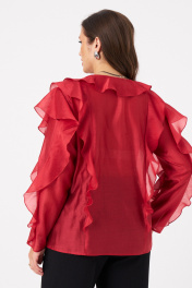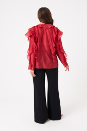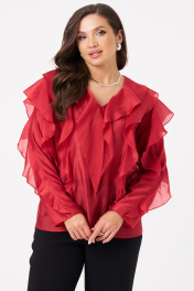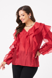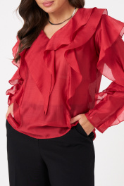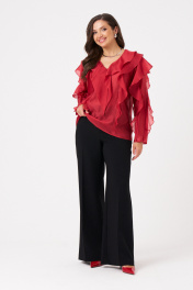 Женская блузка выполнена из легкой и воздушной вискозной ткани что придает ей приятную мягкость и комфорт в носке. Её терракотовый цвет делает его подходящим для повседневных ситуаций. Дизайн переда и спинки украшен двумя вертикальными рельефами, которые создают стройный силуэт и визуально удлиняют линию туловища. Внутри рельефов вставлены изящные воланы, добавляющие образу нотки романтики и женственности. Горловина V-образная обработана воланами, что придает мягкую изысканность и привлекательность. Длинные втачные рукава украшены воланами по линии проймы и вдоль рукава, создавая легкий объем и динамику движения. Такая отделка подчеркивает воздушность модели и делает ее особенно привлекательной. Эта блузка терракотового оттенка идеально подойдет для повседневных образов — она сочетает комфорт, стиль и женственность, позволяя выглядеть элегантно в любой ситуации. 44 Блузка: Длина изделия - 65см, Длина рукава - 60см, Ширина плеча - 12.6см, Ширина по груди - 51.5см, Ширина по низу - 55.5см, Ширина рукава - 18.9см; 46 Блузка: Длина изделия - 65см, Длина рукава - 60см, Ширина плеча - 12.8см, Ширина по груди - 53.5см, Ширина по низу - 57.5см, Ширина рукава - 19.7см; 48 Блузка: Длина изделия - 66см, Длина рукава - 60см, Ширина плеча - 13см, Ширина по груди - 55.5см, Ширина по низу - 59.5см, Ширина рукава - 20.5см; 50 Блузка: Длина изделия - 66см, Длина рукава - 60см, Ширина плеча - 13.2см, Ширина по груди - 57.5см, Ширина по низу - 61.5см, Ширина рукава - 21.3см; 52 Блузка: Длина изделия - 66см, Длина рукава - 60см, Ширина плеча - 13.4см, Ширина по груди - 59.5см, Ширина по низу - 63.5см, Ширина рукава - 22.1см;