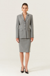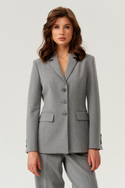 Этот женский жакет выполнен из костюмной и комфортной поливискозной ткани серого оттенка, идеально подходящей для повседневных образов. Его классический дизайн сочетает стиль и практичность, делая его универсальным элементом гардероба. Застежка центральная на обметанные петли и пуговицы обеспечивает аккуратный и элегантный внешний вид. Перед украшен двумя талиевыми вытачками и двумя рельефами, идущими от проймы до линии талии, что создает стройный силуэт. Также на передней части расположены два прорезных кармана с клапанами и двумя обтачками, добавляющие функциональности и стильности. Спинка оформлена средним швом с шлицей, а также имеет две талиевые вытачки для более хорошей посадки. Горловина обработана пиджачным воротником, придающим образу классическую строгость. Длинные втачные рукава украшены декоративной шлицей с пуговицами у низа, что добавляет модели изящества и деталей. Жакет на поливискозной подкладке мягко облегает тело, обеспечивая комфорт в течение всего дня. Этот жакет — отличный выбор для создания стильных повседневных образов с нотками элегантности и практичности. 48