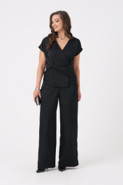 Блузка женская из атласной ткани для повседневной носки. Блузка полуприлегающего силуэта. Блузка отрезная по линии талии. Верхняя часть блузки на запах с небольшими складками, а также имеется рельеф, идущий от линии плеча до отрезной линии по талии. Нижняя часть блузки имеет декоративную деталь, а также имитацию баски. Спинка со средним швом. Горловина V-образная. Рукава спущенные. Стильная блузка черного оттенка будет создавать впечатление утонченности и элегантности, а за счет качественного материала платье будет очень комфортным к телу, а также красивый блеск придаст шарма. В данной блузке вы будете смотреться очень очаровательно ведь она отлично подчеркнет все ваши достоинства и скроет имеющиеся недостатки. 44 Блузка: Длина изделия - 57,5см, Ширина плеча - 23,1см, Ширина по груди - 48см, Ширина по низу - 48см, Ширина по талии - 41см, Ширина рукава - 18,5см; 46 Блузка: Длина изделия - 57,5см, Ширина плеча - 23,3см, Ширина по груди - 50см, Ширина по низу - 50см, Ширина по талии - 43см, Ширина рукава - 19,5см; 48 Блузка: Длина изделия - 57,5см, Ширина плеча - 23,5см, Ширина по груди - 52см, Ширина по низу - 52см, Ширина по талии - 45см, Ширина рукава - 20,5см;