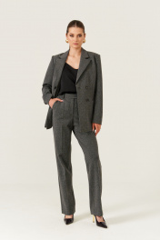 Жакет женский из смесового трикотажного полотна для повседневной носки. Жакет полуприлегающего силуэта. Застежка центральная бортовая на одну обметанную петлю и одну пуговицу. Перед имеет две талиевые вытачки и рельефы, идущие от проймы до линии низа изделия, а также на переде располагается два прорезных кармана с листочкой. Спинка со средним швом и четырьмя рельефами. Рельефы, идущие от плечевого шва и от проймы до низа изделия. Горловина V-образная, обработана воротником стойкой. Рукава втачные длинные. По низу рукава имеется декоративная шлица на обметанные петли и пуговицы. Жакет имеет поливискозную подкладку по переду. Очень стильный жакет, который обязательно не оставит никого равнодушным. В нем вы сможете чувствовать себя модной, а главное очень красивой. 44 Жакет: Длина изделия - 71.5см, Длина рукава - 62см, Ширина плеча - 13.5см, Ширина по бедрам - 52см, Ширина по груди - 48.5см, Ширина рукава - 19.5см; 46 Жакет: Длина изделия - 71.5см, Длина рукава - 62см, Ширина плеча - 13.5см, Ширина по бедрам - 54см, Ширина по груди - 50.5см, Ширина рукава - 20.2см; 48 Жакет: Длина изделия - 71.5см, Длина рукава - 62см, Ширина плеча - 13.5см, Ширина по бедрам - 56см, Ширина по груди - 52.5см, Ширина рукава - 21см; 50 Жакет: Длина изделия - 72см, Длина рукава - 62см, Ширина плеча - 13.7см, Ширина по бедрам - 58см, Ширина по груди - 54.5см, Ширина рукава - 21.7см; 52 Жакет: Длина изделия - 73см, Длина рукава - 62см, Ширина плеча - 14см, Ширина по бедрам - 60см, Ширина по груди - 56.5см, Ширина рукава - 22.5см; 54 Жакет: Длина изделия - 73см, Длина рукава - 62см, Ширина плеча - 14см, Ширина по бедрам - 62см, Ширина по груди - 58.5см, Ширина рукава - 23.2см;