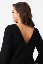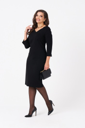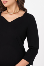Женское платье из поливискозного трикотажного полотна черного цвета. Модель выполнена в миди-длине с V-образной горловиной по спинке. Перед платья украшен двумя талиевыми вытачками от боковых швов и двумя вытачками создавая вид сердцевидной горловины, что обеспечивает хорошую посадку и подчеркивает талию. Спинка оформлена с отрезной кокеткой и двумя складками для дополнительного объема, а также имеет средний шов с потайной молнией для застегивания. В нижней части спинки расположен разрез по среднему шву, добавляющий удобства при движении. Рукава втачные длиной чуть ниже локтя, по низу рукава по локтевому срезу имеется разрез, что создает комфорт и стильный внешний вид. Это универсальное платье предназначено для повседневной носки либо для различного рода мероприятий сочетает элегантность и практичность. При сочетании с аксессуарами вы получите новый образ. 46 Платье: Длина изделия по спинке - 108см, Длина рукава - 49см, Ширина по бедрам - 53см, Ширина по груди - 50см, Ширина по талии - 45см, Ширина рукава вверху - 17.5см, Ширина рукава внизу - 14см; 48 Платье: Длина изделия по спинке - 108см, Длина рукава - 50см, Ширина по бедрам - 55см, Ширина по груди - 52см, Ширина по талии - 47см, Ширина рукава вверху - 18см, Ширина рукава внизу - 14.5см; 50 Платье: Длина изделия по спинке - 108см, Длина рукава - 50см, Ширина по бедрам - 57см, Ширина по груди - 54см, Ширина по талии - 49см, Ширина рукава вверху - 19см, Ширина рукава внизу - 15см; 52 Платье: Длина изделия по спинке - 108см, Длина рукава - 50см, Ширина по бедрам - 59см, Ширина по груди - 56см, Ширина по талии - 51см, Ширина рукава вверху - 20см, Ширина рукава внизу - 15.3см;
