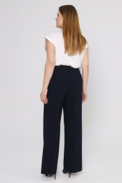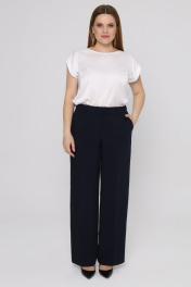 Классические женские брюки клеш станут находкой для делового и повседневного гардероба. Широкие брюки со стрелками будут уместны и на городской прогулке, и на официальной встрече в офисе. Благодаря универсальному дизайну и клешу от бедра, женские брюки больших размеров визуально вскрывают лишние сантименты и делают силуэт стройнее. Застежка-молния гармонично дополнена шлевками для дополнения модели кожаным или текстильным ремнем. Брюки черные прекрасно будут сочетаться с блузами, рубашками, джемперами. Вы можете заказать широкие штаны женские из качественного материала по выгодной цене. 48 Брюки: Высота посадки - 26см, Длина брюк с поясом - 106см, Длина по внутреннему шву - 81см, Ширина брючин сверху - 71см, Обхват брюк по низу - 57см, Ширина по бедрам - 53см, Ширина по талии - 40см;