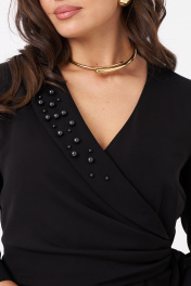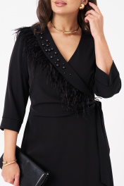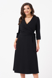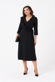 Женское платье из поливискозного волокна, предназначенное для повседневной носки. Модель выполнена в полуприлегающем силуэте с имитацией жакета на запах и отрезной линией талии, что подчеркивает фигуру. Лиф украшен нагрудной вытачкой, а спинка — средним швом с двумя талиевыми вытачками и потайной молнией для удобства. Юбка расширяется к низу, создавая элегантный силуэт. Воротник — V-образный с шалью, украшенной декоративными бусинами и по краю воротника перьями, которые прижелании можно отстегнуть.. Рукава втачные, длиной ниже локтя, обеспечивают комфорт и стиль. Длина платья — макси. Модель выполнена на качественной вискозной подкладке. Изящное платье чёрного цвета подойдёт для торжественных случаев. 44 Платье: Дл.спины от высшей плечевой точки до подреза - 41.5см, Длина изделия - 115см, Длина рукава - 46см, Ширина плеча - 11.5см, Ширина по бедрам - 55см, Ширина по груди - 46.5см, Ширина по талии - 39.5см, Ширина рукава - 17см; 46 Платье: Дл.спины от высшей плечевой точки до подреза - 42см, Длина изделия - 115см, Длина рукава - 46см, Ширина плеча - 11.5см, Ширина по бедрам - 57см, Ширина по груди - 48.5см, Ширина по талии - 41.5см, Ширина рукава - 17.5см; 48 Платье: Дл.спины от высшей плечевой точки до подреза - 42см, Длина изделия - 115см, Длина рукава - 46см, Ширина плеча - 11.7см, Ширина по бедрам - 59см, Ширина по груди - 50.5см, Ширина по талии - 43.5см, Ширина рукава - 18.2см; 50 Платье: Дл.спины от высшей плечевой точки до подреза - 42.5см, Длина изделия - 115см, Длина рукава - 46см, Ширина плеча - 11.7см, Ширина по бедрам - 61см, Ширина по груди - 52.5см, Ширина по талии - 46см, Ширина рукава - 19см; 52 Платье: Дл.спины от высшей плечевой точки до подреза - 42.5см, Длина изделия - 115.5см, Длина рукава - 46см, Ширина плеча - 12см, Ширина по бедрам - 63см, Ширина по груди - 54.5см, Ширина по талии - 48см, Ширина рукава - 19.7см; 54 Платье: Дл.спины от высшей плечевой точки до подреза - 43см, Длина изделия - 115.5см, Длина рукава - 46см, Ширина плеча - 12см, Ширина по бедрам - 65см, Ширина по груди - 56.5см, Ширина по талии - 50см, Ширина рукава - 20.2см;