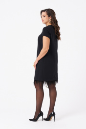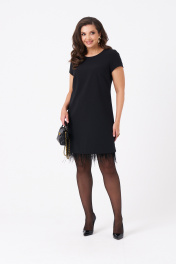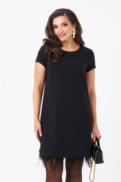 Это женское платье из поливискозной ткани, предназначенное для повседневной носки. Перед имеет две нагрудные вытачки, что придает изделию аккуратный и стройнящий силуэт. Спинка выполнена со средним швом и оснащена потайной застёжкой-молнией в шве для удобства надевания. Нижняя часть платья украшена декоративными перьями, добавляющими оригинальности и изящества образу. Перья крепятся на тесьму с кнопками, что позволяет отстёгивать их перед стиркой либо носить платье без них. Горловина, расширенная создает комфортное облегание и стильный вид. Короткие втачные рукава с фигурным низом делают платье практичным и легким в носке. Цвет изделия — классический черный, что делает его универсальным и подходящим для различных случаев. 42 Платье: Длина изделия по спинке - 87см, Длина рукава - 15см, Ширина плеча - 8.4см, Ширина по бедрам - 49см, Ширина по груди - 45см, Ширина по талии - 43см, Ширина рукава внизу - 15.5см;