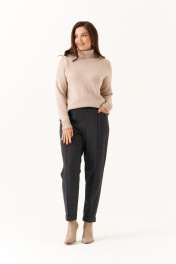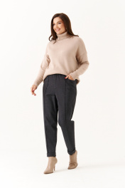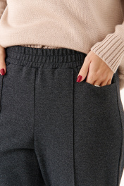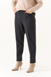 Женские брюки из смесового трикотажного полотна темно-серого цвета, идеально подходящие для повседневной носки. Модель заужена к низу и оснащена притачным поясом с эластичной вставкой для комфортной посадки. Передняя часть украшена аккуратной застроченной стрелкой. Брюки имеют удобные карманы с подкройным бочком и завершены манжетами внизу, что придаёт образу стиль и аккуратность. 48 Брюки: Высота посадки - 30см, Длина брюк без пояса - 94см, Длина по внутреннему шву - 71,5см, Ширина брючин сверху - 69см, Обхват брюк по низу - 35,5см, Ширина по бедрам - 52,5см, Ширина по талии - 36,5см; 50 Брюки: Высота посадки - 30,5см, Длина брюк без пояса - 94см, Длина по внутреннему шву - 71,5см, Ширина брючин сверху - 71см, Обхват брюк по низу - 36см, Ширина по бедрам - 54,5см, Ширина по талии - 39см; 52 Брюки: Высота посадки - 31см, Длина брюк без пояса - 94,5см, Длина по внутреннему шву - 71,5см, Ширина брючин сверху - 73см, Обхват брюк по низу - 36,5см, Ширина по бедрам - 56,5см, Ширина по талии - 41,5см; 54 Брюки: Высота посадки - 31см, Длина брюк без пояса - 94,5см, Длина по внутреннему шву - 71,5см, Ширина брючин сверху - 75,5см, Обхват брюк по низу - 37см, Ширина по бедрам - 58,5см, Ширина по талии - 43,5см; 56 Брюки: Высота посадки - 31,5см, Длина брюк без пояса - 95см, Длина по внутреннему шву - 71,5см, Ширина брючин сверху - 77,5см, Обхват брюк по низу - 37,5см, Ширина по бедрам - 60,5см, Ширина по талии - 45,5см; 58 Брюки: Высота посадки - 32см, Длина брюк без пояса - 95,5см, Длина по внутреннему шву - 71,5см, Ширина брючин сверху - 79см, Обхват брюк по низу - 38,5см, Ширина по бедрам - 62,5см, Ширина по талии - 47,5см; 60 Брюки: Высота посадки - 32см, Длина брюк без пояса - 95,5см, Длина по внутреннему шву - 71,5см, Ширина брючин сверху - 82см, Обхват брюк по низу - 39,5см, Ширина по бедрам - 64,5см, Ширина по талии - 49,5см; 62 Брюки: Высота посадки - 32,5см, Длина брюк без пояса - 96см, Длина по внутреннему шву - 71,5см, Ширина брючин сверху - 84см, Обхват брюк по низу - 40см, Ширина по бедрам - 66,5см, Ширина по талии - 51,5см;