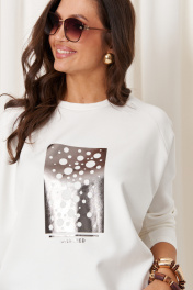 Этот женский джемпер выполнен из мягкого и приятного трикотажа, который обеспечивает комфорт в носке. Модель прямого силуэта подходит для разных типов фигуры и отлично сочетается с различными образами. Перед украшен дизайнерской печатью с интересным принтом и надписью, что придает изделию индивидуальность и стиль. Горловина чуть расширенная, обработана притачной тесьмой, что добавляет аккуратности и завершенности образу. Длинные рукава реглан обеспечивают свободу движений и комфорт. Классическая длина делает этот джемпер универсальным элементом гардероба. Чёрный оттенок легко сочетается с разными цветами и стилями, а его идеальная посадка подчеркнет вашу фигуру и привлечет восхищенные взгляды окружающих. 46 Джемпер: Длина изделия по спинке - 61см, Длина рукава с плечом - 69.6см, Ширина по груди - 68см, Ширина по низу - 49см, Ширина рукава вверху - 20.3см;