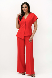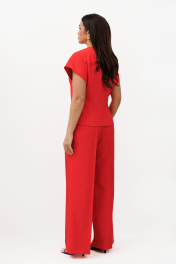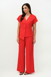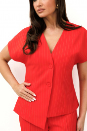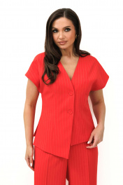 Жакет женский из струящейся ткани, выполненный в красной палитре с легкой полоской. Жакет обладает полуприлегающим силуэтом, создавая элегантный и современный силуэт. Центральная бортовая застежка оформлена на обметанные петли и пуговицы, а криволинейный край борта делает модель визуально более интересной, одна часть которого чуть длиннее другой. Перед украшен двумя вертикальными рельефами, идущими от плечевого шва до линии низа. Спинка оформлена со средним швом и двумя вертикальными рельефами, добавляющими объем и форму. В боковых швах расположены небольшие разрезы, обеспечивающие удобство и слегка свободный ход. Вырез горловины выполнен в V-образной форме, а короткие рукава добавляют образу легкости и практичности. Жакет на подкладке, что повышает комфорт и качество носки. Универсальный и стильный жакет, он подойдет для деловых встреч, офисных образов или повседневных мероприятий. 44 Жакет: Длина изделия - 59.5см, Ширина плеча - 25.5см, Ширина по груди - 46.5см, Ширина по низу - 51см, Ширина рукава - 23.5см; 46 Жакет: Длина изделия - 59.5см, Ширина плеча - 25.5см, Ширина по груди - 48.5см, Ширина по низу - 53см, Ширина рукава - 24см; 48 Жакет: Длина изделия - 59.5см, Ширина плеча - 26см, Ширина по груди - 50.5см, Ширина по низу - 55см, Ширина рукава - 24.5см; 50 Жакет: Длина изделия - 60см, Ширина плеча - 26.5см, Ширина по груди - 52.5см, Ширина по низу - 57см, Ширина рукава - 25см; 52 Жакет: Длина изделия - 60.5см, Ширина плеча - 27см, Ширина по груди - 54.5см, Ширина по низу - 59см, Ширина рукава - 25.5см;
