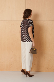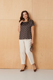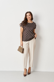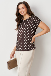 Эта женская базовая блуза прямого силуэта в коричневом оттенке с классическим принтом в горошек — универсальный и стильный элемент гардероба. Изготовленная из атласной ткани, она идеально подходит для повседневной носки, сочетаясь с юбками, брюками и джинсами для создания разнообразных образов. Легкая и приятная на ощупь, блуза обладает гладкой поверхностью, которая не вызывает дискомфорта даже в жаркую погоду. Свободный крой с опущенной линией плеча и короткими цельнокроеными рукавами обеспечивает безупречную посадку и комфорт в движении, делая ее незаменимым предметом для любого повседневного образа. 50 Блузка: Длина изделия - 58.5см, Ширина плеча - 23см, Ширина по груди - 56.5см, Ширина по низу - 60см, Ширина рукава - 21.2см;