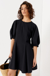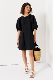 Платье мини из хлопка с пышными рукавами и свободным силуэтом Панда 139083w черный
