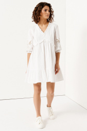 Платье на каждый день из хлопка с пятиугольным вырезом Панда 143280w белый