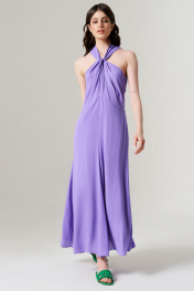 Платье нарядное из текстиля с длинной 118 см и рукавами Панда 148680w фиолетовый