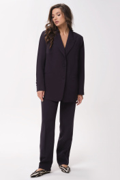 Костюм женский из смесовой ткани для повседневной носки. Костюм состоит из жакета и брюк. Жакет прямого силуэта на подкладке. Жакет с центральной бортовой застежкой на две обметанные петли и две пуговицы. Перед имеет две нагрудные вытачки, а также прорезные карманы с двумя обтачками. Спинка со средним швом. Горловина обработана пиджачным воротником. Рукав длинный, двухшовный. По низу рукава имеется шлица обманка на петли пуговицы. Верхний срез брюк обработан притачным поясом с застежкой на одну обметанную петлю и одну пуговицу, а также с застежкой на тесьму-молнию в среднем шве брюк. В боковых швах брюк имеются боковые прорезные карманы с подкройным бочком. Длина брюк классическая. Очень элегантный и стильный костюм, который будет отлично смотреться на любой фигуре. 52 Брюки: Высота посадки - 31см, Длина брюк без пояса - 108.5см, Длина по внутреннему шву - 82.5см, Ширина брючин сверху - 71.5см, Обхват брюк по низу - 41см, Ширина по бедрам - 56см, Ширина по талии - 42см; Жакет: Длина изделия - 70.5см, Длина рукава - 62см, Ширина плеча - 12.5см, Ширина по бедрам - 61см, Ширина по груди - 57.5см, Ширина рукава - 20.8см; 54 Брюки: Высота посадки - 31.5см, Длина брюк без пояса - 108.5см, Длина по внутреннему шву - 82.5см, Ширина брючин сверху - 73.5см, Обхват брюк по низу - 41.5см, Ширина по бедрам - 58см, Ширина по талии - 44см; Жакет: Длина изделия - 70.5см, Длина рукава - 62см, Ширина плеча - 13см, Ширина по бедрам - 63см, Ширина по груди - 59.5см, Ширина рукава - 21.5см; 62 Брюки: Высота посадки - 33.5см, Длина брюк без пояса - 109.5см, Длина по внутреннему шву - 82.5см, Ширина брючин сверху - 81.5см, Обхват брюк по низу - 43.5см, Ширина по бедрам - 66см, Ширина по талии - 52см; Жакет: Длина изделия - 70.5см, Длина рукава - 62см, Ширина плеча - 13.5см, Ширина по бедрам - 71см, Ширина по груди - 67.5см, Ширина рукава - 24.5см;