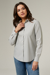 Блуза женская из хлопковой ткани для повседневной носки. Блуза прямого кроя с длинным втачным рукавом оформленным притачной манжетой. Изделие с фронтальной застежкой на пуговицы и воротником- стойкой. Спинка с отрезной кокеткой и встречной складкой. Отделочные строчки проложены по низу, манжетам, стойке, воротнику, кокетке изделия. 42 Блузка: Длина изделия - 68см, Длина рукава - 61см, Обхват шеи - 43см, Ширина плеча - 13.5см, Ширина по груди - 51см, Ширина по низу - 54см, Ширина рукава - 18.4см;