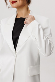 Жакет женский из атласной нарядной ткани для повседневной носки. Жакет свободного силуэта, удлиненный. Застежка в жакете центральная бортовая на одну обметанную петлю и одну пуговицу. На передней части жакета располагаются прорезные карманы с клапаном. Спинка со средним швом. Горловина обработана пиджачным воротником. Рукава втачные, длинные. Жакет на поливискозной подкладке. Очень стильный классический жакет который станет не заменимым в вашем гардеробе. 54 Жакет: Длина изделия - 74см, Длина рукава - 62см, Ширина плеча - 14.2см, Ширина по груди - 60см, Ширина по низу - 64см, Ширина рукава - 21.4см;