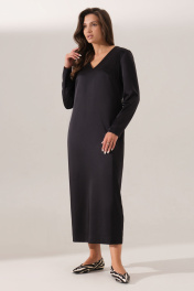 Макси платье из атласной ткани с разрезом и талиевым вытачками Панда 165280w черный