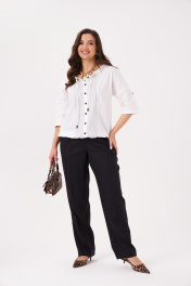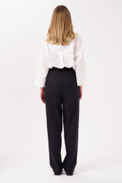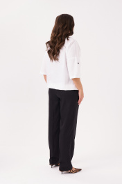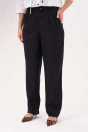 Брюки женские прямые из смесовой ткани для повседневной носки. Верхний срез брюк обработан притачным поясом, застежка на одну петлю и одну пуговицу, а также имеется застежка на тесьму-молнию в среднем шве брюк. Задняя часть брюк имеет вытачки, входящие в прорезной карман в рамку с двумя обтачками. В брюках расположен в боковом шве карман с подкройным бочком и с небольшими разрезами к низу изделия. Отличный классический вариант брюк, которые будут гармонично смотреться под любые изделия. 42 Брюки: Высота посадки - 32.5см, Длина брюк без пояса - 110см, Длина по внутреннему шву - 83см, Ширина брючин сверху - 67.5см, Обхват брюк по низу - 42см, Ширина по бедрам - 46.5см, Ширина по талии - 31.5см; 44 Брюки: Высота посадки - 33см, Длина брюк без пояса - 110см, Длина по внутреннему шву - 83см, Ширина брючин сверху - 69.5см, Обхват брюк по низу - 42.5см, Ширина по бедрам - 48.5см, Ширина по талии - 33.5см; 46 Брюки: Высота посадки - 33.5см, Длина брюк без пояса - 110.5см, Длина по внутреннему шву - 83см, Ширина брючин сверху - 71.5см, Обхват брюк по низу - 43см, Ширина по бедрам - 50.5см, Ширина по талии - 35.5см; 48 Брюки: Высота посадки - 34см, Длина брюк без пояса - 110.5см, Длина по внутреннему шву - 83см, Ширина брючин сверху - 73.5см, Обхват брюк по низу - 43.5см, Ширина по бедрам - 52.5см, Ширина по талии - 37.5см; 50 Брюки: Высота посадки - 34.5см, Длина брюк без пояса - 111см, Длина по внутреннему шву - 83см, Ширина брючин сверху - 75.5см, Обхват брюк по низу - 44см, Ширина по бедрам - 54.5см, Ширина по талии - 40см; 52 Брюки: Высота посадки - 35см, Длина брюк без пояса - 111см, Длина по внутреннему шву - 83см, Ширина брючин сверху - 77.5см, Обхват брюк по низу - 44.5см, Ширина по бедрам - 56.5см, Ширина по талии - 42см;