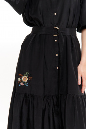 Элегантное женское платье прямого силуэта из смесовой ткани – идеальный выбор для повседневной носки и офиса. В нем сочетаются стиль и комфорт: свободный фасон и отрезное по низу платье с небольшой сборкой добавляют удобства и оригинальности. Центральная бортовая застежка с пуговицами и обметанными петлями обеспечивает удобство в носке и добавляет классический акцент. Перед платья украшен кокеткой с дизайнерской вышивкой в виде подсолнухов, что придает изделию уникальности и изысканности. Также, вышивка расположена по низу переда, подчеркивая его изящество. Спинка платья с отрезной кокеткой усиливает стильный образ, а горловина, обработанная рубашечным воротником с отрезной стойкой, добавляет нотки делового стиля. Рукава, длиной чуть ниже локтя, обработаны окантовочной тесьмой с небольшой сборкой, что придает платью утонченность. Платье выполнено в черном цвете и имеет длину миди, что делает его универсальным выбором для различных повседневных и офисных мероприятий, будь то деловая встреча или вечер с друзьями. Вискозная подкладка придает легкость и комфорт в носке, а сам фасон делает платье идеальным для весны и лета. Это платье можно носить как в офисе, так и на различных мероприятиях, подчеркивая свою женственность и стиль. С этим платьем вы всегда будете выглядеть на высоте, привлекая восхищенные взгляды окружающих. Оно идеально подойдет для женщин, которые ценят стиль, комфорт и универсальность в своем гардеробе. 46 Платье: Длина изделия - 125см, Длина рукава - 40см, Ширина плеча - 17.2см, Ширина по бедрам - 61см, Ширина по груди - 54см, Ширина по талии - 57см, Ширина рукава - 20.8см; 48 Платье: Длина изделия - 125см, Длина рукава - 40см, Ширина плеча - 17.4см, Ширина по бедрам - 63см, Ширина по груди - 56см, Ширина по талии - 59см, Ширина рукава - 21.6см; 50 Платье: Длина изделия - 125см, Длина рукава - 40см, Ширина плеча - 17.6см, Ширина по бедрам - 65см, Ширина по груди - 58см, Ширина по талии - 61см, Ширина рукава - 22.4см; 52 Платье: Длина изделия - 125см, Длина рукава - 40см, Ширина плеча - 17.8см, Ширина по бедрам - 67см, Ширина по груди - 60см, Ширина по талии - 63см, Ширина рукава - 23.2см; 54 Платье: Длина изделия - 125см, Длина рукава - 40см, Ширина плеча - 18см, Ширина по бедрам - 69см, Ширина по груди - 62см, Ширина по талии - 65см, Ширина рукава - 24см;