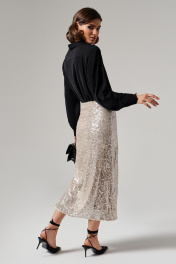 Юбка длинная из пайеток и трикотажа с разрёром по ноге Панда 178850w бежевый