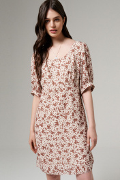 Платье повседневное с коротким рукавом и шнурками Панда 180080w бежевый