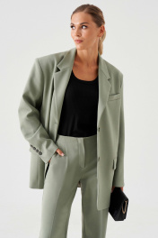 Жакет приталенный деловой из текстиля до середины бедра Панда 194330w оливковый