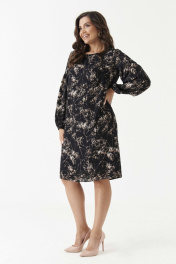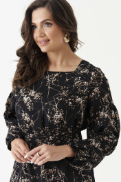 Черное платье из легкой струящейся ткани с поясом и резинками на рукавах Панда 203680w черный
