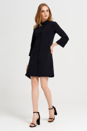 "Платье деловое женское - лучшая одежда для рабочих, учебных будней. Лаконичную модель уместно надеть на встречу с друзьями, прогулку по городу. Удобный крой не ограничивает движений. Черное платье женское без декора чудесно выглядит в монохромных аутфитах. Оно также интересно смотрится с дополнением в виде ярких или контрастных по цвету аксессуаров. Платье рубашка женское прямого покроя делает фигуру стройнее и утонченнее. Модель с отложным воротником рубашечного типа застегивается на ряд пуговиц, расположенных по вертикальной планке. Платье женское осеннее создано с втачными, чуть расширенными к низу, рукавами длиной 7/8 и прорезными карманами в боковых швах. Низ изделия - с округлыми разрезами. Платье женское короткое изготовлено из приятной на ощупь ткани, которая отлично держит форму, не сминается, не вытягивается. Особенности ухода - стирка в деликатном режиме при температуре 30С. Вы можете купить платье в офис, чтобы создавать эффектные стильные образы на каждый день." 42 Платье: Длина рукава - 47см, Длина спинки - 86см, Длина до талии - 41.8см, Обхват шеи - 39.4см, Ширина плеча - 10.8см, Ширина по бедрам - 48см, Ширина по груди - 46см, Ширина рукава - 16.2см; 44 Платье: Длина рукава - 47см, Длина спинки - 86см, Длина до талии - 42см, Обхват шеи - 40см, Ширина плеча - 11см, Ширина по бедрам - 50см, Ширина по груди - 48см, Ширина рукава - 16.9см;