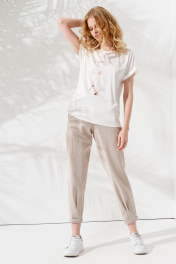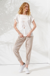 Летняя женская блузка с коротким рукавом – нарядная и одновременно сдержанная. Ее можно надеть на прогулку, встречу, сочетая с брюками разных видов и удобной обувью. Женская футболка белого цвета с принтом универсальная и не притязательна в выборе аксессуаров. Стильная трикотажная блузка с круглым выкатом выполнена в прямом крое. На рукавах имеются небольшие отвороты. Вы можете купить футболку нарядную женскую в стандартных размерах – 42-50. футболка нарядная женская, футболка женская, трикотажные блузки для женщин, трикотажная блузка, стильные трикотажные блузки, летние трикотажные блузки, летние женские футболки, летние женские блузки с коротким рукавом, летние женские блузки, женские футболки с принтом, женские трикотажные блузки, женские блузки с цветочным принтом, женская блузка с принтом, блуза летняя женская, блуза женская, белая футболка женская, белая трикотажная блузка, белая блузка женская летняя 50 Блузка: Длина изделия - 65.5см, Длина переда от высшей плечевой точки до низа - 65см, Ширина плеча - 24.5см, Ширина по низу - 58см, Ширина под проймой - 55см, Ширина рукава - 21см;