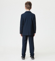 Строгий пиджак для мальчика из текстильной с мелкой клеточкойм на вискозной подкладке. Пиджак полуприлегающего силуэта, удлиненный, с центральной застежкой на две петли и пуговицы до перегиба лацкана. Детали переда с отрезными бочками, передними вытачками и боковыми прорезными карманами с клапаном. На левом лацкане отделочная петля. Спинка со средним швом. Рукава втачные двухшовные,с настрочными налокотниками, локтевые швы заканчиваются шлицами. На шлицах по четыре отделочные петли и пуговицы. Воротник пиджачного типа с тупыми концами. На деталях подкладки обработан внутренний карман и вешалка.Пиджак с притачной по низу подкладкой. 30 Пиджак: Длина изделия - 48см, Длина рукава - 47.5см, Ширина плеча - 8.5см, Ширина по груди - 37см, Ширина по низу - 39см, Ширина рукава - 14.5см; 30 Пиджак: Длина изделия - 51см, Длина рукава - 50см, Ширина плеча - 9см, Ширина по груди - 37см, Ширина по низу - 39см, Ширина рукава - 14.5см; 32 Пиджак: Длина изделия - 54см, Длина рукава - 52.5см, Ширина плеча - 9.5см, Ширина по груди - 39см, Ширина по низу - 41см, Ширина рукава - 15см;