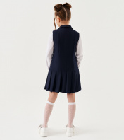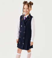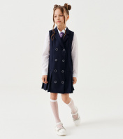 Школьный сарафан для девочки младшей школьной группы из поливискозной однотонной ткани. Сарафан на вискозной подкладке. Сарафан отрезной по линии бедер, нижняя часть в складочки. По переду имеются прорезные карманы с листочками. Сарафан двубортный, со сквозной застежкой по переду на петли и пуговицы. Воротник пиджачного типа с отложными лацканами. Отличный комфортный вариант для повседневных школьных дней. 30 Сарафан: Длина изделия - 57см, Ширина по груди - 6см, Ширина по груди - 32см, Ширина по подрезу - 37см; 30 Сарафан: Длина изделия - 57см, Ширина по груди - 6см, Ширина по груди - 34см, Ширина по подрезу - 39см; 36 Сарафан: Длина изделия - 66см, Ширина по груди - 7.5см, Ширина по груди - 38см, Ширина по подрезу - 43см; 36 Сарафан: Длина изделия - 69см, Ширина по груди - 8см, Ширина по груди - 40см, Ширина по подрезу - 45см; 38 Сарафан: Длина изделия - 72см, Ширина по груди - 8.5см, Ширина по груди - 42см, Ширина по подрезу - 47см;