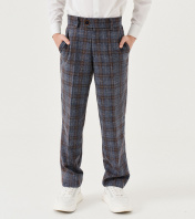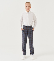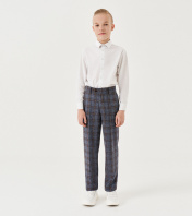 Классические брюки для мальчика. Брюки на талии, прямого силуэта, с притачным поясом. Брюки с застежкой на одну петлю и пуговицу на поясе и тесьму-молнию по переду. На внутренней части пояса имеются регуляторы. По поясу расположены шлевки. На передних частях расположены боковые карманы. На задних частях брюк обработаны по одной вытачке на каждой половине. На задних частях брюк имеется прорезной карман в рамку с застежкой на петлю и пуговицу. Передняя часть брюк на подкладке. 30 Брюки: Высота посадки - 25см, Длина брюк с поясом - 76см, Длина по внутреннему шву - 54см, Ширина брючин сверху - 46см, Обхват брюк по низу - 32см, Ширина по бедрам - 33см, Ширина по талии - 28.5см; 30 Брюки: Высота посадки - 25.5см, Длина брюк с поясом - 79см, Длина по внутреннему шву - 56см, Ширина брючин сверху - 46см, Обхват брюк по низу - 32см, Ширина по бедрам - 33см, Ширина по талии - 28.5см; 32 Брюки: Высота посадки - 26см, Длина брюк с поясом - 82см, Длина по внутреннему шву - 58см, Ширина брючин сверху - 48см, Обхват брюк по низу - 33см, Ширина по бедрам - 35см, Ширина по талии - 30см; 34 Брюки: Высота посадки - 26.5см, Длина брюк с поясом - 85см, Длина по внутреннему шву - 60см, Ширина брючин сверху - 50см, Обхват брюк по низу - 34см, Ширина по бедрам - 37см, Ширина по талии - 31.5см; 36 Брюки: Высота посадки - 27см, Длина брюк с поясом - 88см, Длина по внутреннему шву - 62см, Ширина брючин сверху - 52см, Обхват брюк по низу - 35см, Ширина по бедрам - 39см, Ширина по талии - 33см;