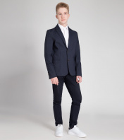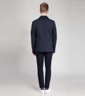 Пиджак для мальчика из трикотажного вискозного полотна. Пиджак полуприлегающего силуэта с центральной застежкой на две петли и пуговицы, с V- образным вырезом горловины, с втачными рукавами. Локтевые швы заканчиваются шлицами с декоративными пуговицами. Перед пиджака с отрезным бочком, с талиевыми вытачками. На переде расположены накладные карманы, обработанные подкладкой, а так же на левой полочке переда расположен нагрудный карман с листочкой. Спинка со средним швом. Воротник отложной пиджачного типа. Перед и рукава пиджака на вискозной подкладке. На левой внутренней части пиджака, на подборте, имеется внутренний карман в рамку с застежкой на пуговицу. Комфортный стильный пиджак станет отличным решением для ежедневной носки в школу. 44 Пиджак: Длина изделия - 66см, Длина рукава - 61.5см, Ширина плеча - 14см, Ширина по груди - 51см, Ширина по низу - 52см, Ширина рукава - 17см; 46 Пиджак: Длина изделия - 66см, Длина рукава - 61.5см, Ширина плеча - 14см, Ширина по груди - 53см, Ширина по низу - 54см, Ширина рукава - 17.5см;