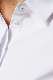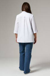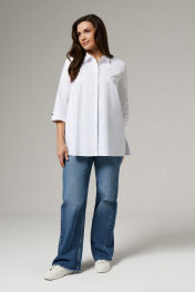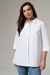 "Неизменная классика - блузка белая женская рубашечного кроя, универсальная в носке. Ее можно надеть не только на работу в офис или на учебу, но и на официальные мероприятия. Лаконичный дизайн придаст повседневным образам более строгий вид. Блузка женская с длинным рукавом больших размеров изготовлена из хлопковой ткани с полиэстером и эластаном. Рукав 7/8 с отложными манжетами украшен декоративными пуговицами и петлями. Рубашка женская белая дополнена отложным воротником сорочечного типа. Застегивается на потайные пуговицы и петли, скрытые под центральной планкой. Блузка-рубашка женская с притачной к спинке кокеткой, которая позволяет добиться идеальной посадки. В центре спинки несколько вытачек, благодаря чему ткань не топорщится. Полуприлегающий фасон формирует изящный силуэт, скрывая недостатки. Благодаря большому содержанию хлопка, рубашка хорошо пропускает воздух. Женская блузка нарядная пригодится для повседневной носки, поэтому ее можно купить для любого сезона." 56 Блузка: Длина рукава - 44см, Длина спинки - 70см, Обхват шеи - 44.2см, Ширина плеча - 13.4см, Ширина по бедрам - 70см, Ширина по груди - 60см, Ширина рукава - 20.2см;