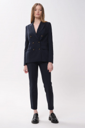 Деловой костюм из хлопковой ткани жакет и укороченные брюки Панда ПА-463920 синий