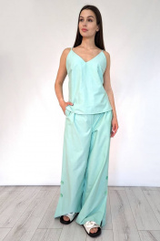 Летний костюм палаццо с открытыми плечами и V-образным вырезом Patriciа 02-5402 мятный