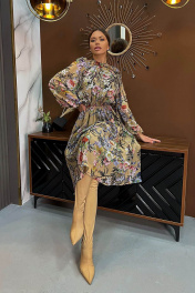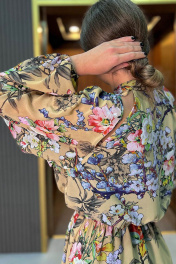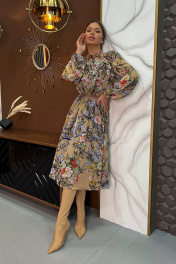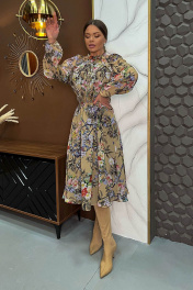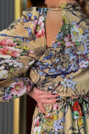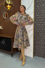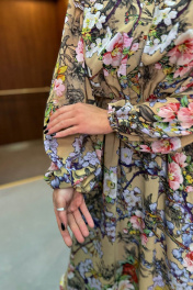 Демисезонное бежевое шифоновое платье с принтом Pavlova 151 цветы