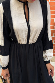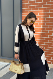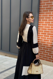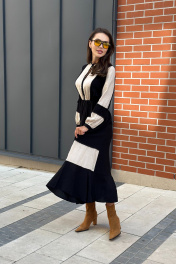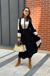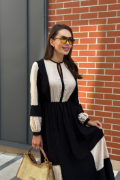 Очаровательное и изысканное платье из осенней коллекции станет воплощением вашей элегантности и стиля. Изящные линии, сочетание цвета, необычная модель и безупречное качество материала создают неповторимый образ, который подчеркнет вашу нежность и женственность. Комфортная посадка обеспечивает свободу движений, а изысканный дизайн и отделка тесьмой с помпонами привлекают восхищенные взгляды. Это платье идеально для различных мероприятий: от вечерних встреч до повседневных прогулок. Позвольте себе ощутить непревзойденный комфорт и быть в центре внимания, выбирая это прекрасное платье от бреда “Pavlova»