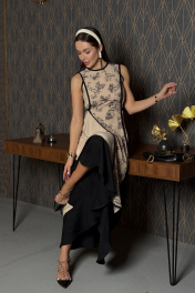 Это элегантное платье привлекает внимание своим изысканным силуэтом и утонченными деталями. Крой: Модель с двумя изящными разрезами, которые добавляют сексуальности и смелости образу. Декор: Уникальный вырез под грудью не только подчеркивает форму, но и делает акцент на женственность. Ткань: Легкая, шикарная ткань обеспечивает комфорт и отлично держит форму, что позволяет создать эффектный образ. Превосходный состав гарантирует приятные тактильные ощущения и долговечность изделия. Детали: Кружевная вставка как намек на роскошь. Элегантное декорирование тесьмой добавляет изюминку и завершает образ. Этот наряд идеально подходит для любых случаев, подчеркивая вашу индивидуальность и стиль.
