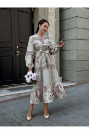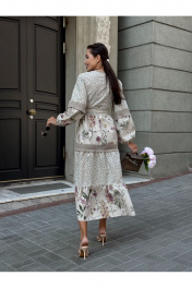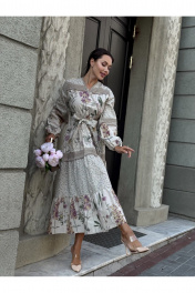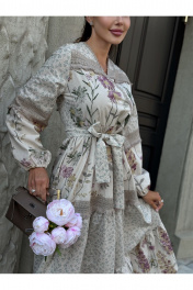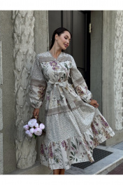 Платье в стиле Прованс — это воплощение романтики и естественной элегантности. Платье из хлопково-льняной ткани, что делает его легким и дышащим. Хлопок обеспечивает комфорт, а лен добавляет структуру и текстуру. В изделии сочетает два прекрасных цветочных принта: один ботанический, другой с узором в стиле "шебби-шик". Такие сочетания делают образ более интересным и многослойным. Многоярусность этой модели платья в комбо со свободным кроем позволяет легко двигаться и создает воздушный силуэт. Это придает женственность и изящество. Детали: - Льняное кружево по краям рукавов и подолу платья создает утонченные акценты. - Пышные рукава добавляют романтики. - Вырез горловины на запах — отличный выбор, который акцентирует внимание на линии шеи и декольте. - Midi-длина позволяет носить это платье как в повседневной обстановке, так и на более торжественных мероприятиях. Удобно для теплого времени года. Стиль и использование: Такое платье прекрасно подходит для прогулок по летнему городу, романтических свиданий, а также для отдыха на природе. Отлично сочетается с обувью на низком каблуке или сандалиями, а также с аксессуарами в пастельных тонах. Платье в стиле Прованс — это идеальный выбор для женщин, которые ценят комфорт и стиль одновременно. Индивидуальные элементы, такие как ботанические рисунки и кружево, делают его уникальным в каждой коллекции.
