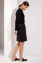 Юбка женская короткая из плотной смесовой ткани с содержанием шерсти. Верхний край обработан обтачкой. Застежка на потайную тесьму-молнию в боковом шве юбки. Спереди рельеф, заканчивающийся небольшим разрезом по низу юбки. Юбка на притачной подкладке, отлетной по низу.