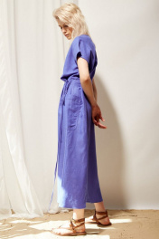 Платье oversize из льняной ткани с накладным карманом PINA 50382 кобальт