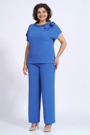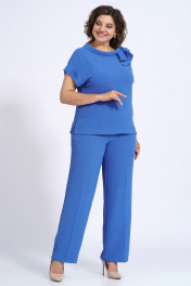 Костюм летний из текстиля с кокилье и разрезами Пинск-Стиль 151 голубой