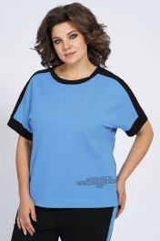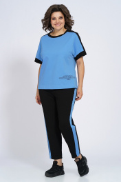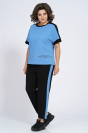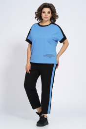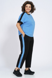 Костюм из трикотажа: футболка и зауженные брюки с лампасами Пинск-Стиль 159 голубой+черный
