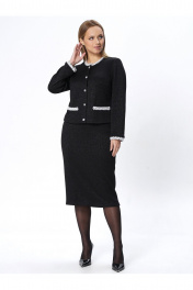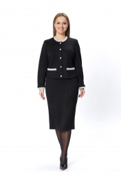 Деловой костюм жакет и юбка в черном трикотажевом стиле Пинск-Стиль 213 черный