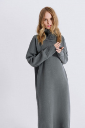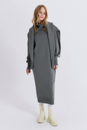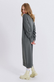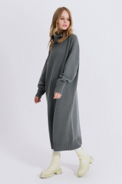 Трикотажное платье-свитер свободного силуэта. Детали: прямой силуэт, спущенная линия плеча, широкий воротник-стойка, рукава удлиненные с высокими манжетами, длина миди Длина платья по спинке около 111 см, длина рукава+ плечо около 50+19=69 см