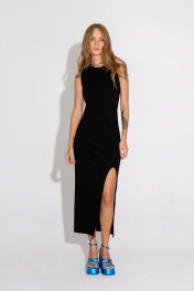 Облегающее трикотажное платье с высоким разрезом и без застежки PiRS 4583 черный