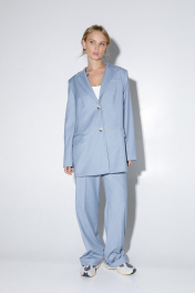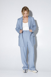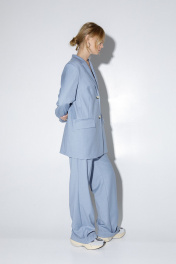Деловой костюм-двойка из трапециевидного жакета и брюк со стрелками PiRS 4822 голубой