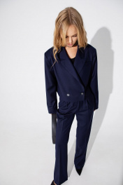 Костюм дво́йка из жакета оверсайз и широких брюк из вискозы PiRS 4982 синий