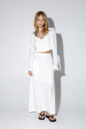 Блуза укороченная из льна с оборками PiRS 5277 молочный