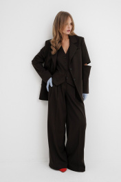 Деловой комплект из жакета и брюк с складками PiRS 5521 темно-коричневый